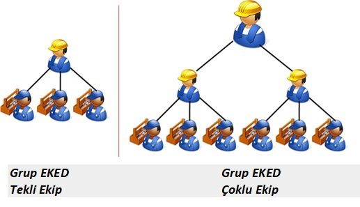Bir grup çalışan tarafından gerçekleştirilen servis ve bakım işlemleri, genellikle bir kişi tarafından gerçekleştirilen servis veya bakım işlemlerinden daha karmaşıktır. Grup kilitleme veya etiketleme işlemleri genellikle kişisel kilitleme veya etiketleme işlemlerinden daha fazla koordinasyon ve iletişim gerektirir.